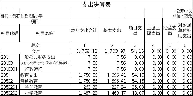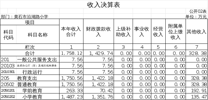 第二部分 黄石市沿湖路小学2023年度部门决算表