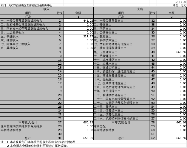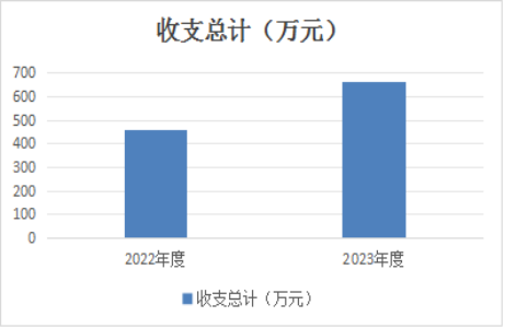 2023年度收、支总计均为660.92万元。与2022年度相比,收、支总计各增加202.03万元,增加44.03%,主要原因是财拨各项经费收、支较2022年增加,2023年医疗收入增加,2023年中心人员经费支出、医疗相关支出增加。