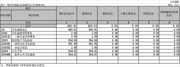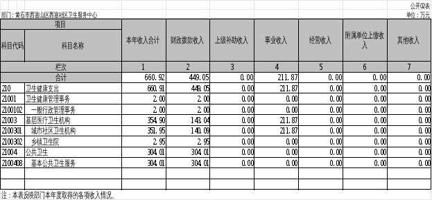 1、机构设置情况:从单位构成看,西塞山区西塞社区卫生服务中心只归口管理本级部门,属独立核算单位,内设党政办公室、基本医疗科、公卫科等3个科室。