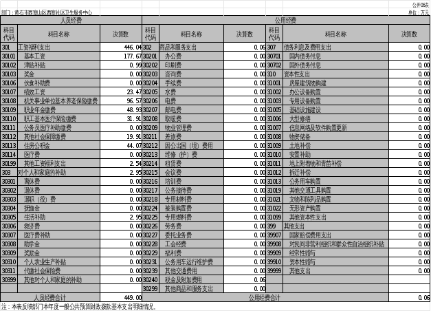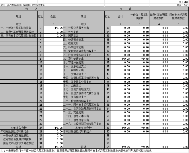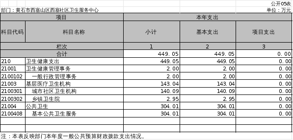 卫生健康支出(类)449.05万元,占100%。主要是用于医疗服务和基本公共卫生服务。