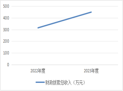 2023年度财政拨款收、支总计为449.05万元。与2022年度相比,财政拨款收、支总计增加134.61万元,增长42.81%。主要原因是2023年人员经费和公卫补助费用均有所增加;支出增加的主要原因是在编人员工资上涨,社保公积金上涨,公卫支出较多。