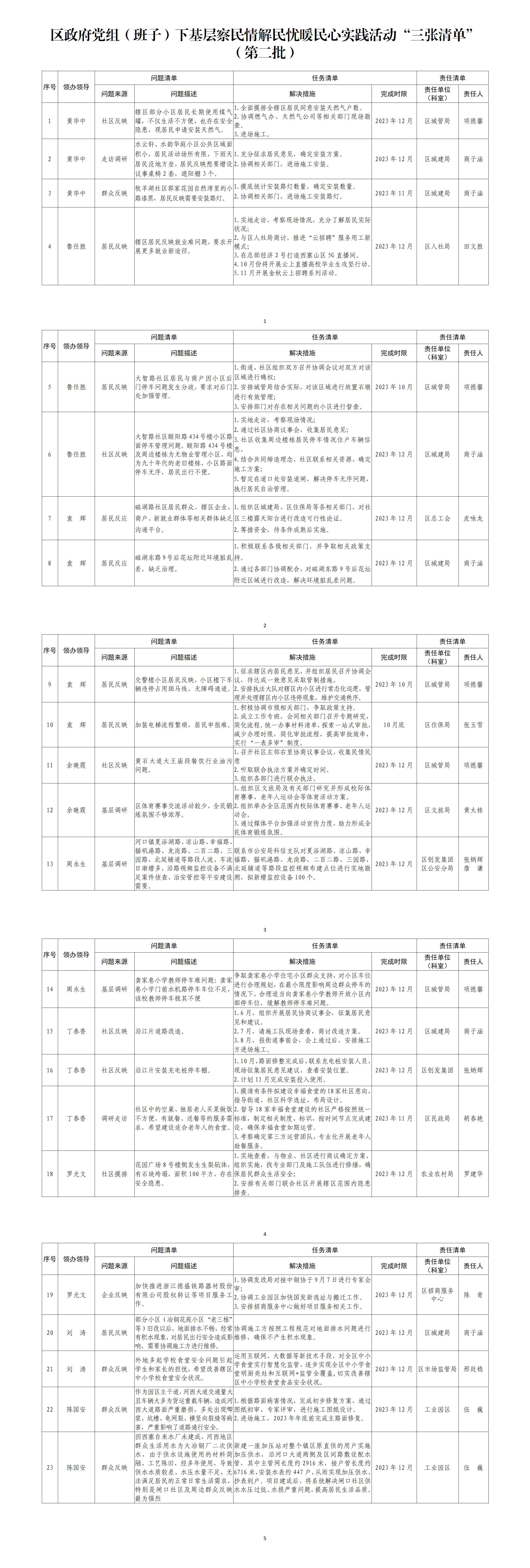 区政府党组(班子)下基层察民情解民忧暖民心实践活动“三张清单” (第二批)