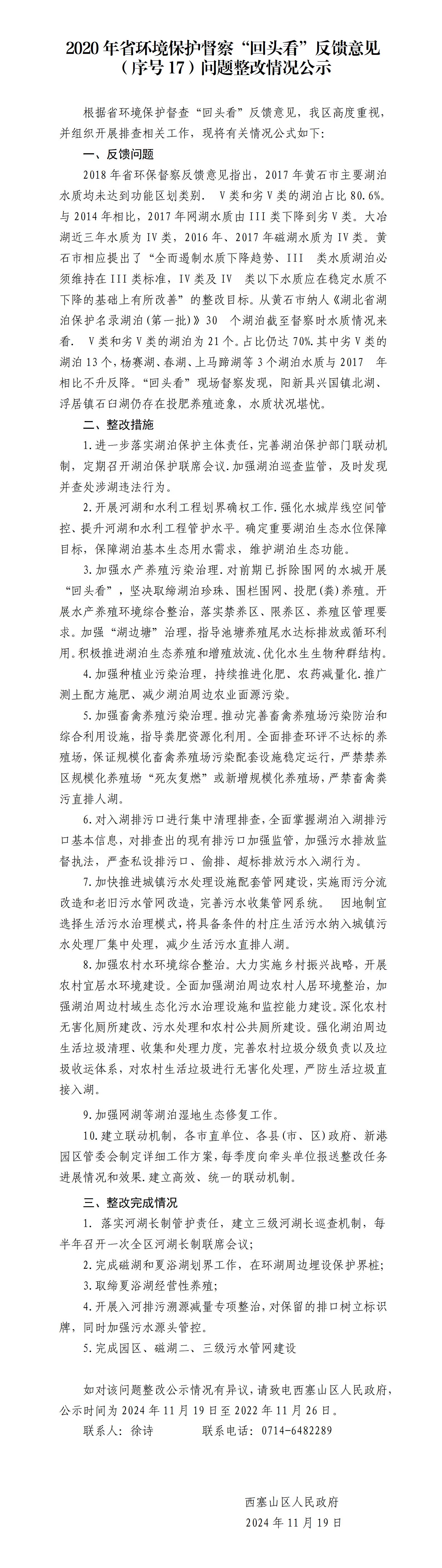 2020年省环境保护督察“回头看”反馈意见 (序号17)问题整改情况公示