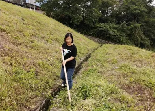 在她的带领下,“娘子军团”手拿木棍,零散分布在水库堤脚,认真的寻找管涌和隐患,日常2分钟的路程,现在往往要徘徊半个小时以上。她说,“割除杂草查找隐患,不放过每一个角落,才能确保万无一失,既然把这个任务交给了我,我就要为乡亲们负责。”
