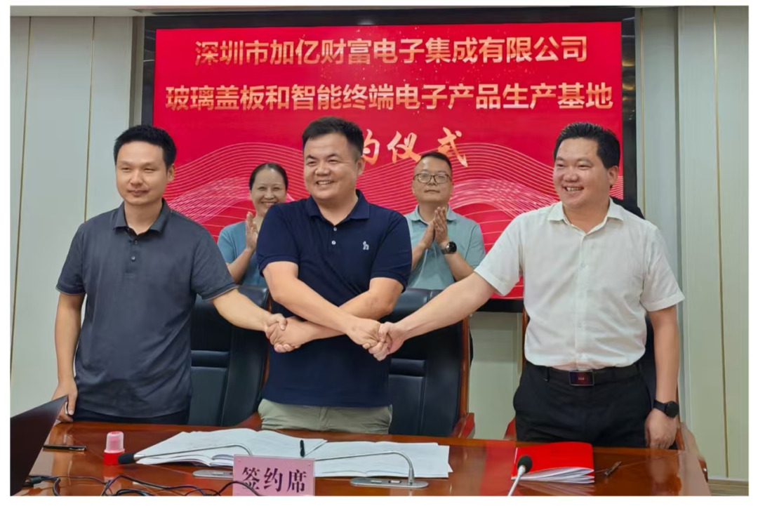8月19日,西塞山区与深圳市加亿财富电子集成有限公司签约,总投资5亿元的玻璃盖板、SMT贴片及智能终端电子产品生产基地正式落户西塞山区。