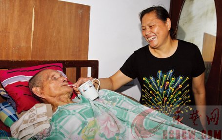 她每天给父亲擦洗身子,二十年来,老人没长过肉疮,这是何耀君最欣慰的成就。此外,儿子工作顺利,侄女也结婚了,何耀君说到这些,自豪而满足。