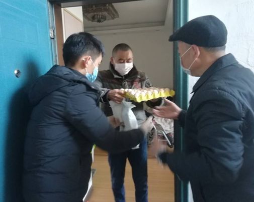 “这是您家的30个鸡蛋和5斤面粉,您放心吃”“这是我们给您送的鸡蛋和面粉,您拿好”大家化身“快递小哥”、“快递小妹”一手提着面粉,一手托举鸡蛋穿梭于胡家湾社区的家家户户,平均每配送完一栋楼每位“配送员”上上下下来回要跑二三十趟,没有电梯爬楼梯、没有工具用手提,汗水湿透了衣背、手臂累得无法举起、双腿肌肉酸痛无法迈步,每当听到居民的一声“谢谢你们了”、看着一张张洋溢着笑容的脸庞,这些“快递员”们仿佛又被注满了能量,脚步轻快了起来,奔向下一户家庭,能通过自己的努力让更多的人感受到快乐他们觉得做的一切都很值得。“我们的一点关怀,能给他们带去一丝温暖和抗疫的信心,就够了。”检察院党委专职副书记孟文笑着说。
