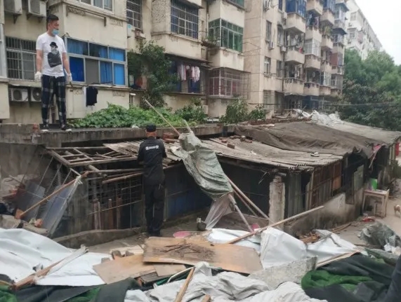 据悉,车棚的承租人是孤寡老人,为了提高收入,在原车棚建筑的外围用石棉瓦、竹子等扩建了一块区域。一开始告知老人违搭部分要拆除时,老人情绪非常激动“坚决不同意”。社区书记带头一边上门与老人耐心做思想解释工作,告知老旧小区改造施行的必要性、坚决性以及改善社区人居环境的重要性,一边安排社区工作人员做好拆违补偿申请、困难救助申请等工作,帮助老人切实解决实际生活困难。晓之以理,动之以情,老人看到社区十足的诚意之后,同意社区进行拆违,并第一时间电话联系车主告知移车事宜。