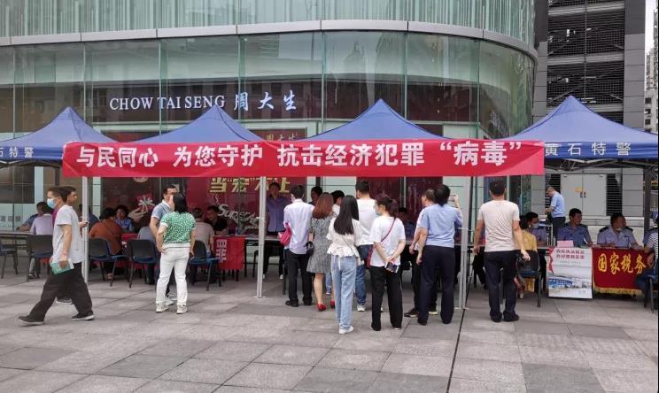 为提高社会群众非法集资辩别防范意识,区金融办5月份在全区开展“与民同心,为您守护”为主题的宣传月活动。5月15日上午,区金融办、西塞山公安分局经侦大队联合市局经侦支队、澄月派出所和各相关单位,在武商黄石购物中心广场开展“5.15防范和打击经济犯罪宣传日活动”。市公安局经侦支队支队长徐水平,西塞山区副区长、公安分局党委书记、局长周永生,分局党委副书记、政委詹谦参加了此次宣传活动,现场向群众讲解防范经济犯罪和防范电信诈骗相关知识。