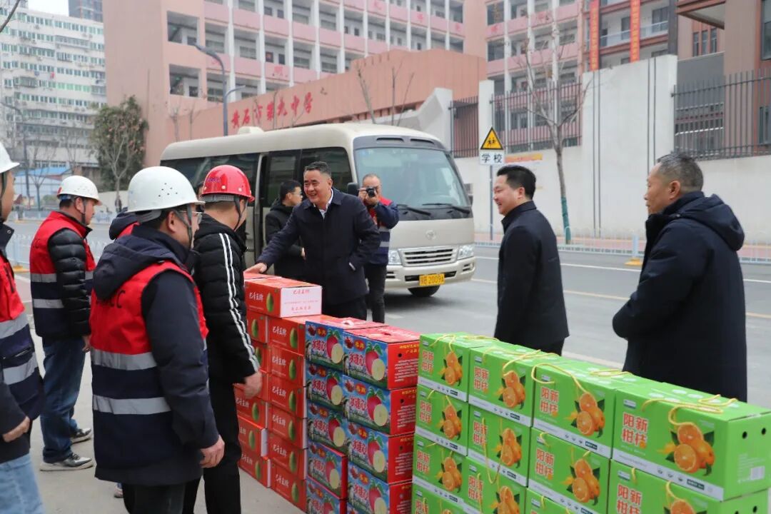 李沈带队先后来到冶钢集团钢友大厦、牧羊新城、东楚·明悦城二期项目工地和区消防救援大队、区城管及环卫处、非遗中心、大冶特钢等地,为一线指战员和职工带去新春的问候,叮嘱大家注重安全生产,注意劳逸结合,为城市运行和项目建设提供有力保障,祝福大家过一个欢乐、祥和的春节。