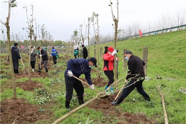 植树现场,市、区领导与参加义务植树活动的干部职工干劲十足,兴致勃勃。大家配合默契,三四人一组,或挥锹铲土,或扶苗培土,或踏土夯实,认真完成每道工序。种好的一株株树苗整齐排列,昂然挺立。参与现场植树的干部职工纷纷表示,植树活动,不仅美化了环境,还进一步提高了大家的绿化观念和生态意识,增强了广大干部职工的社会责任感。