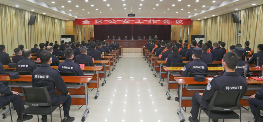 区领导李沈、唐砚冰、赵延忠、鲁任胜出席会议。区公安分局全体党委成员,各派出所、局直单位所(队)长、主任、教导员,民警辅警代表等100余人参加会议。