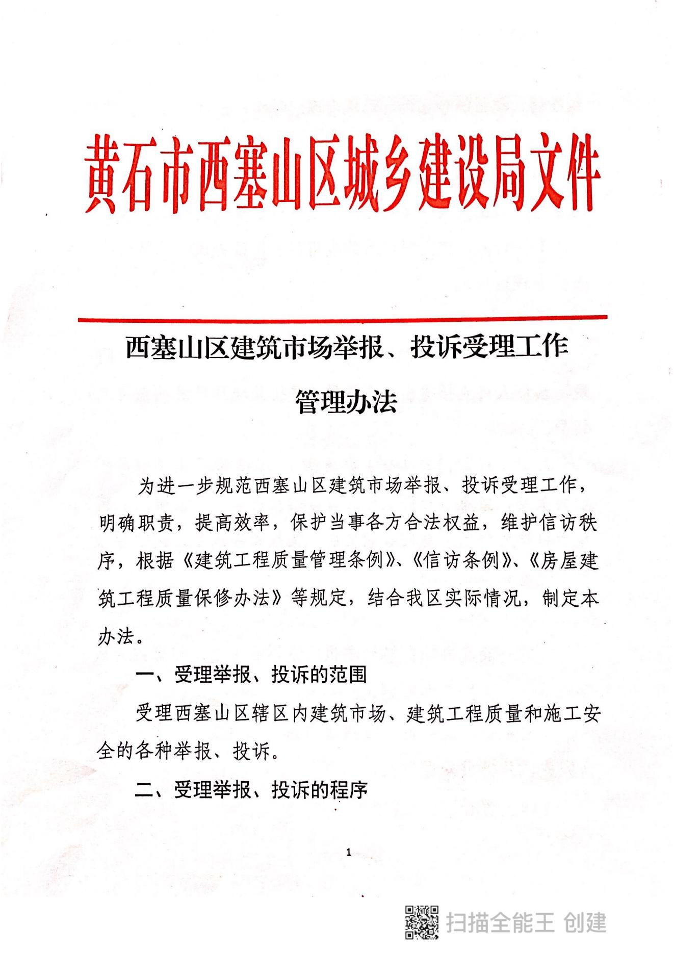 西塞山区建筑市场举报、投诉受理工作管理办法