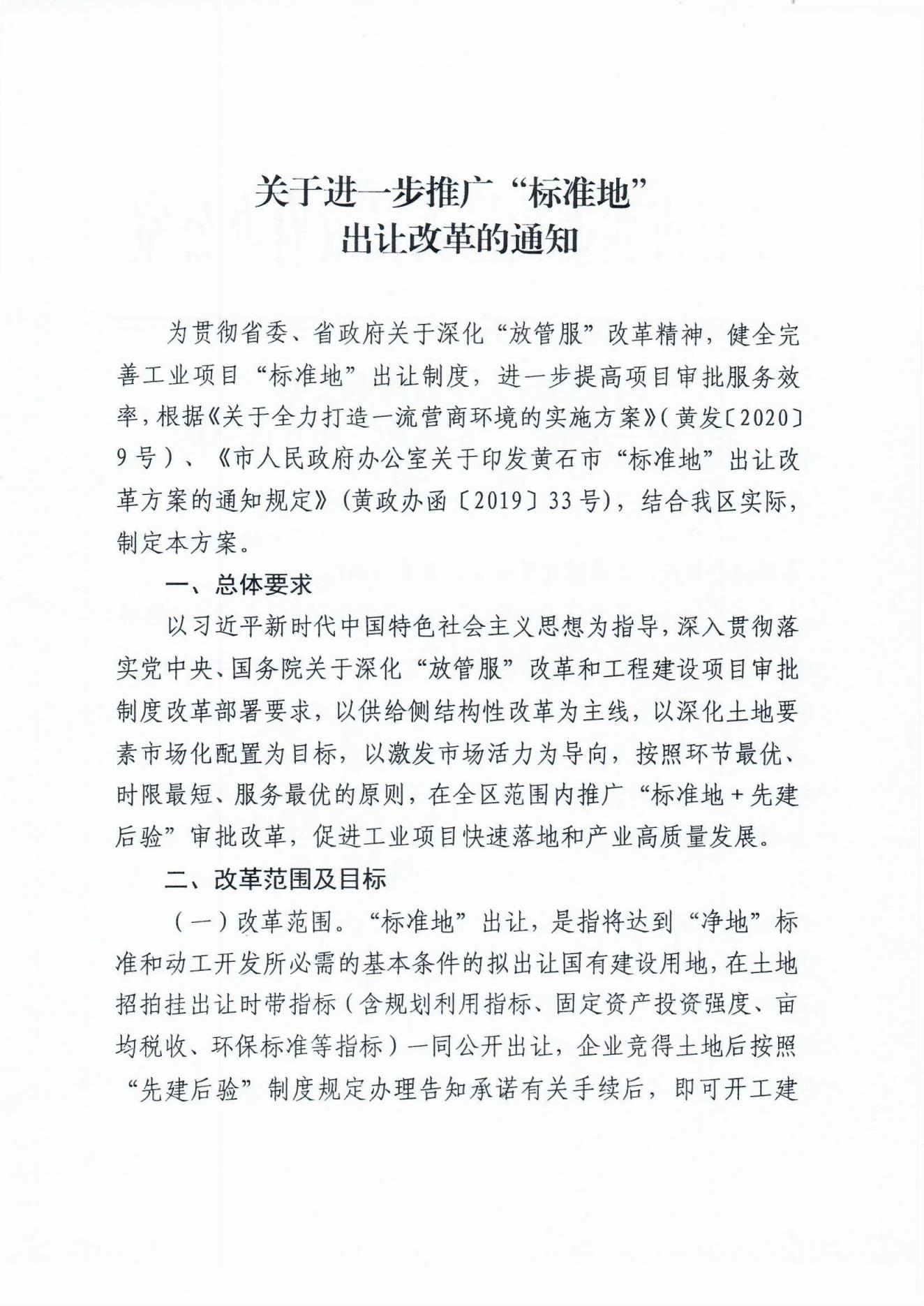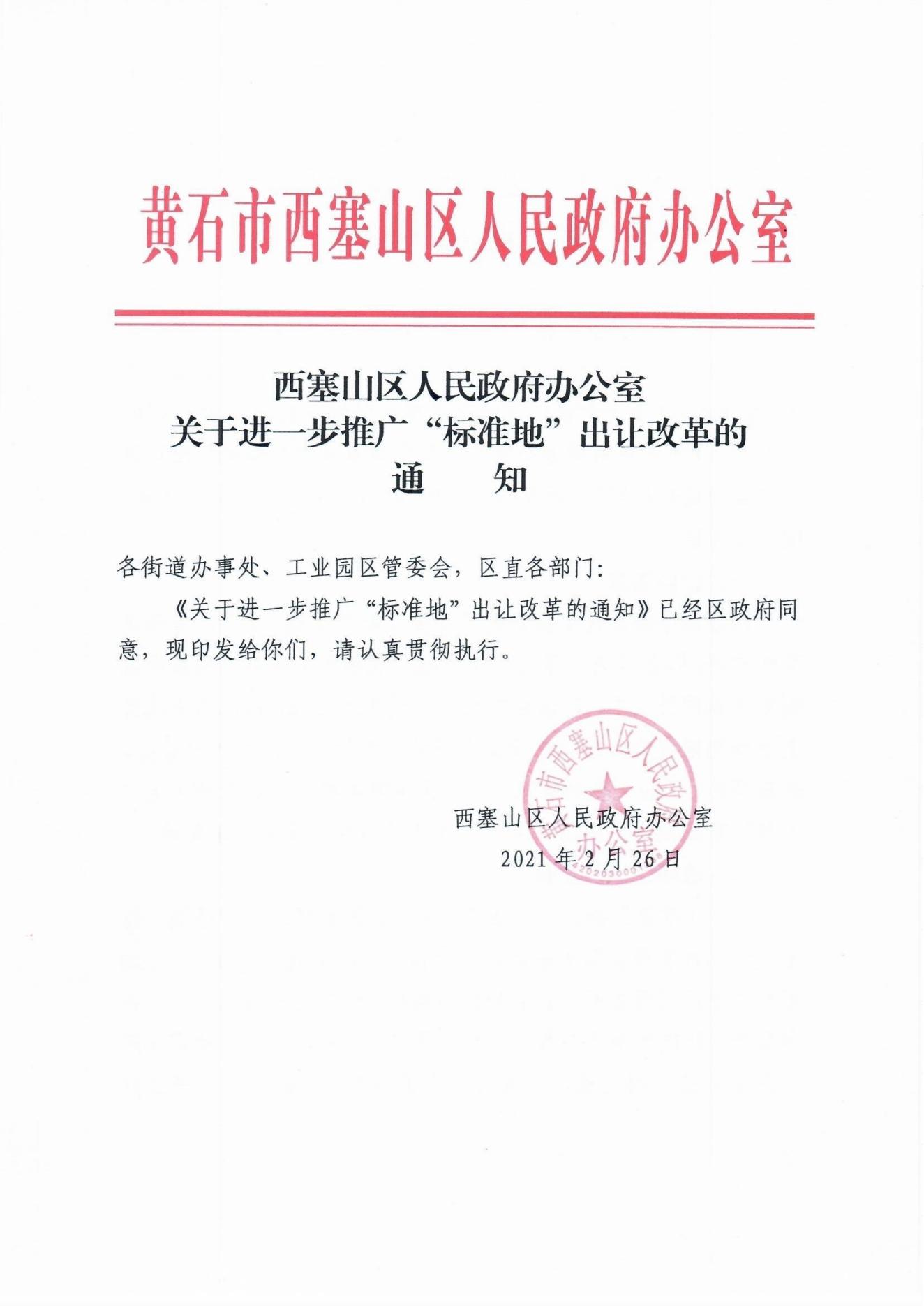 西塞山区人民政府办公室关于印发进一步推广“标准地”出让改革的通知