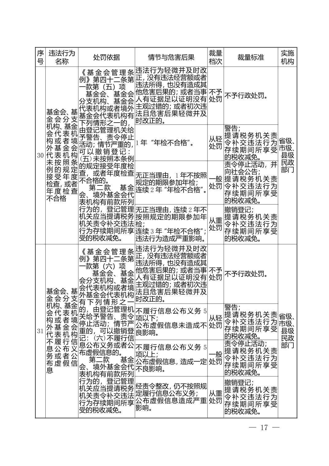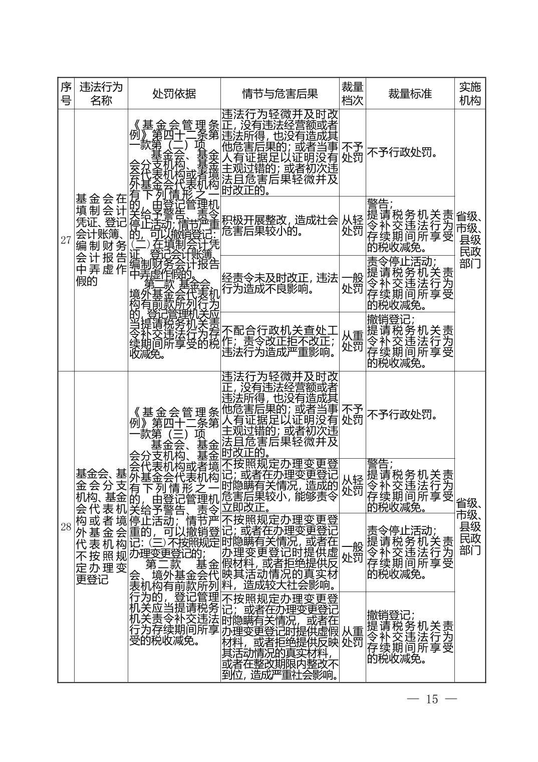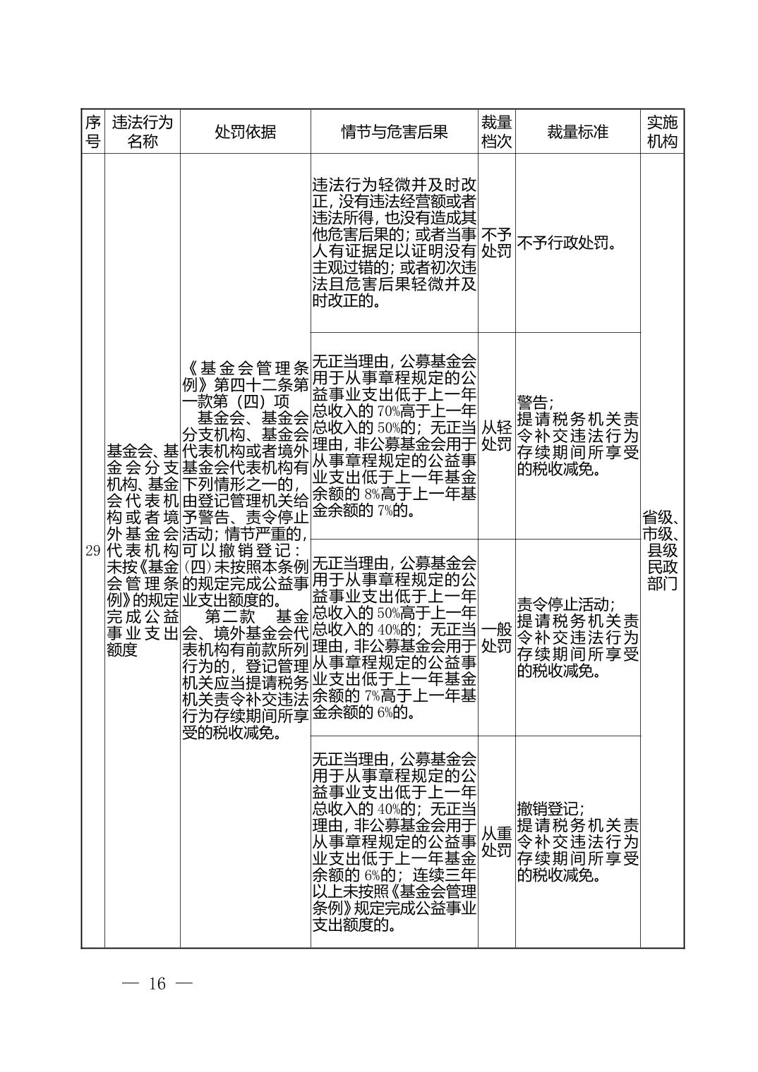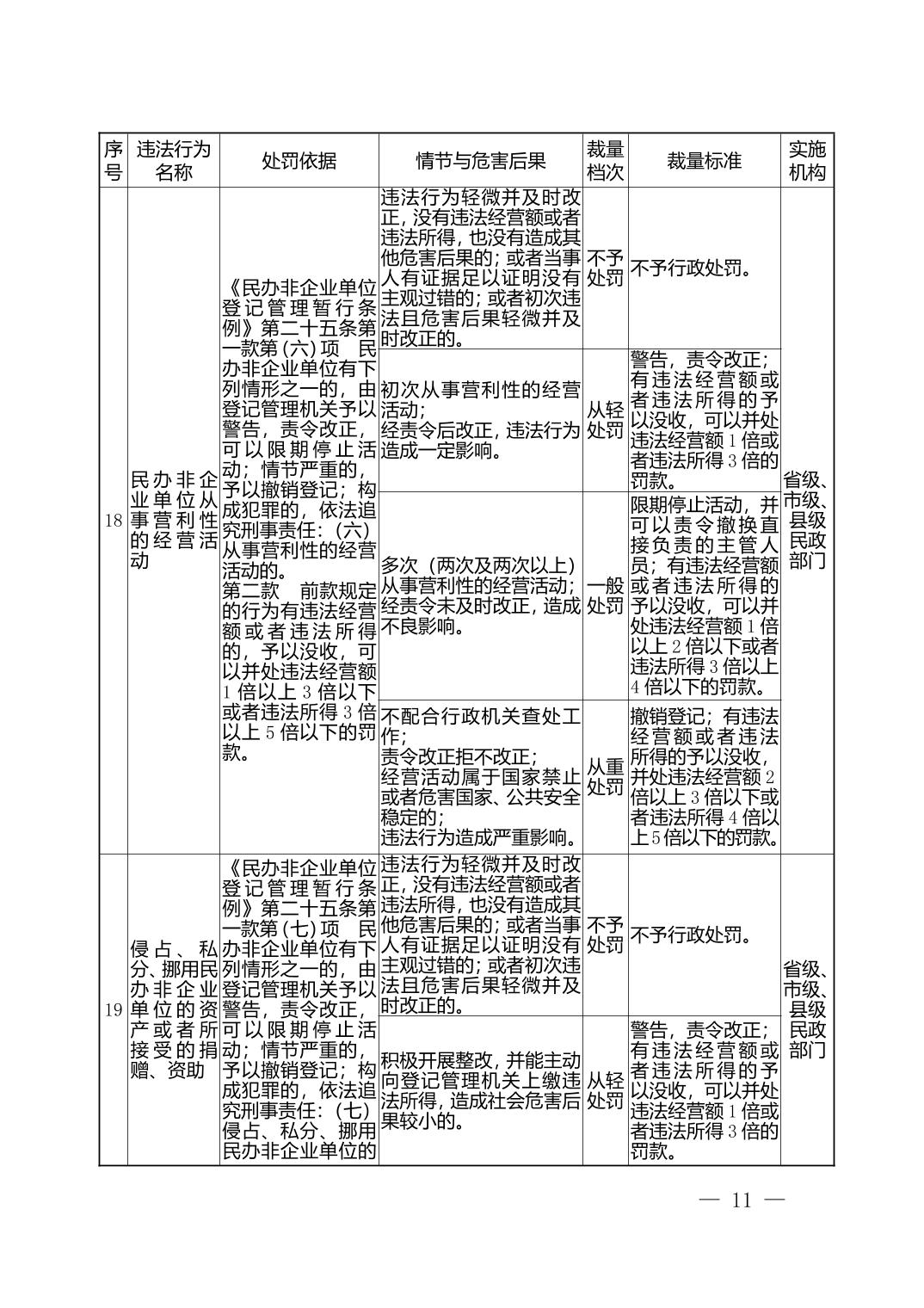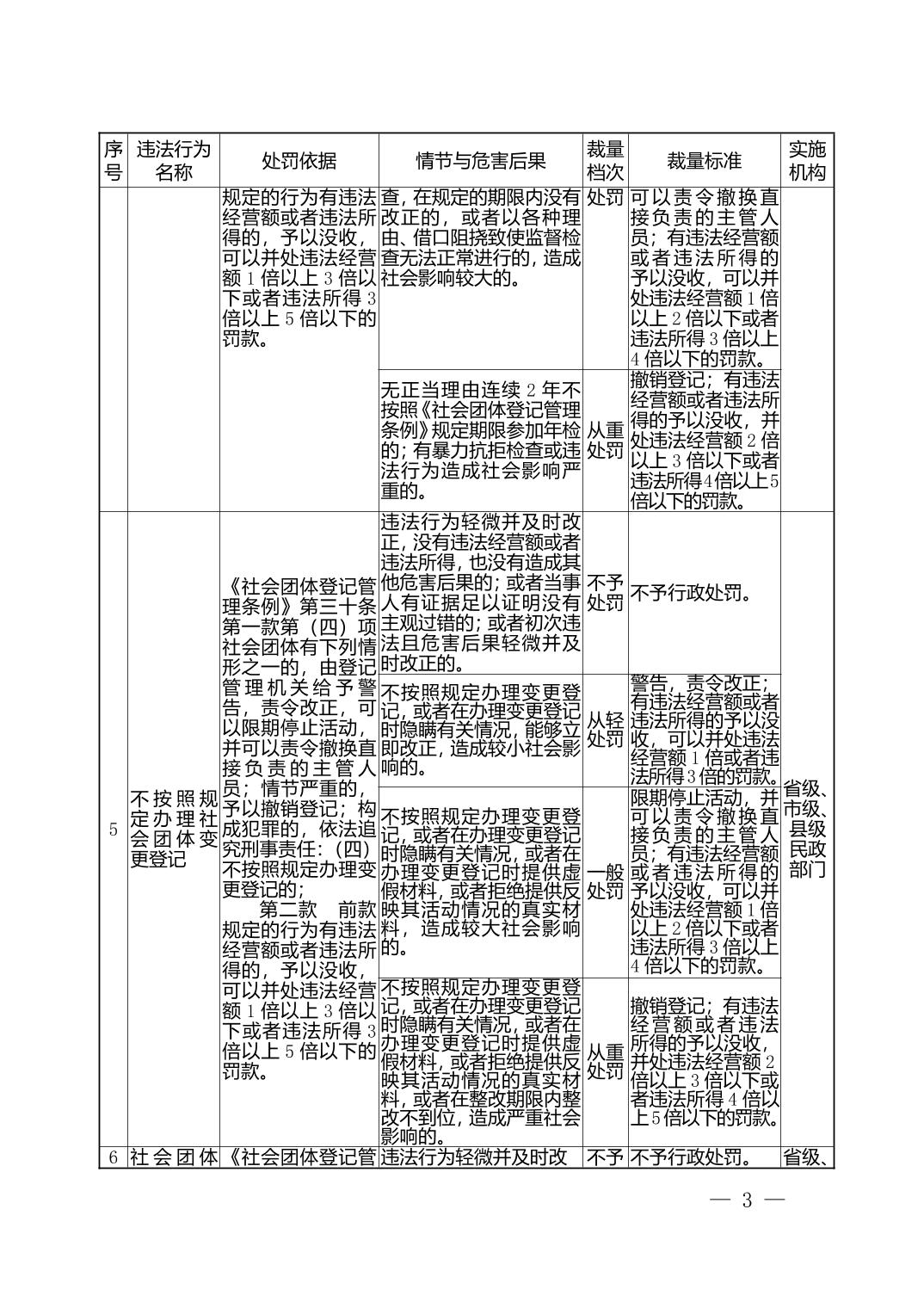 湖北省民政部门行政处罚自由裁量权基准表