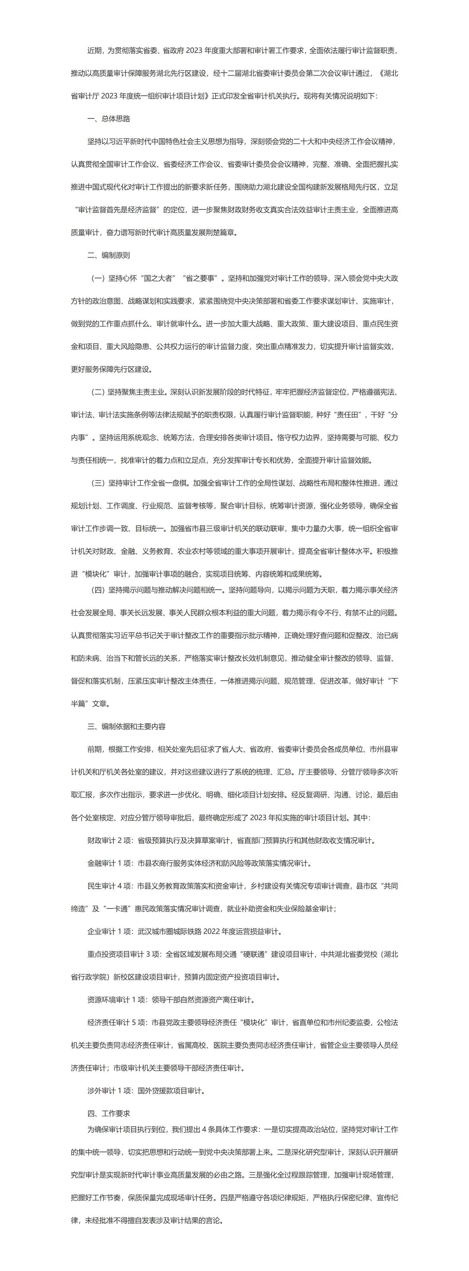 【文字解读】解读|湖北省审计厅2023年度统一组织审计项目计划