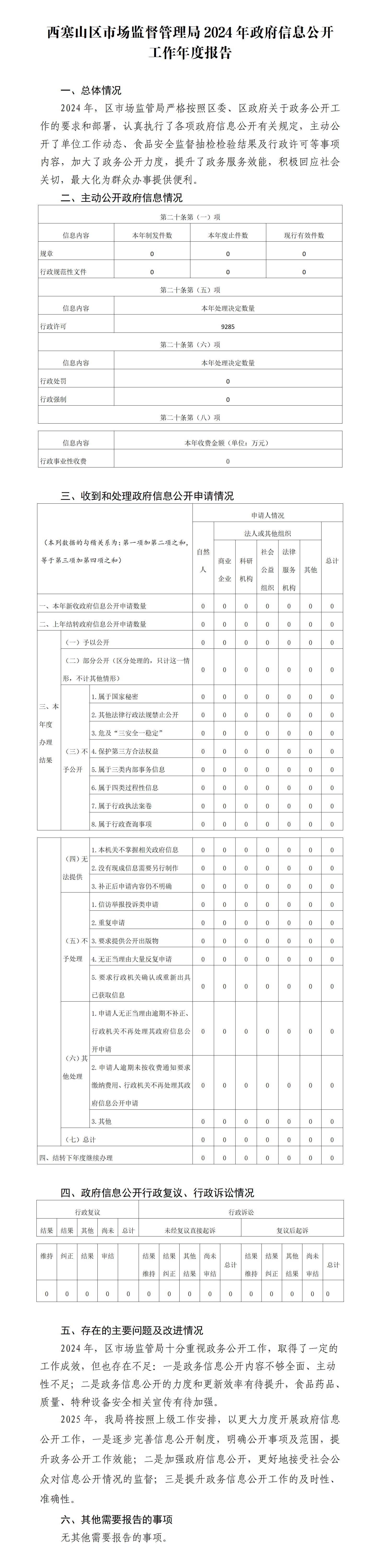 西塞山区市监局2024年政府信息公开工作年度报告