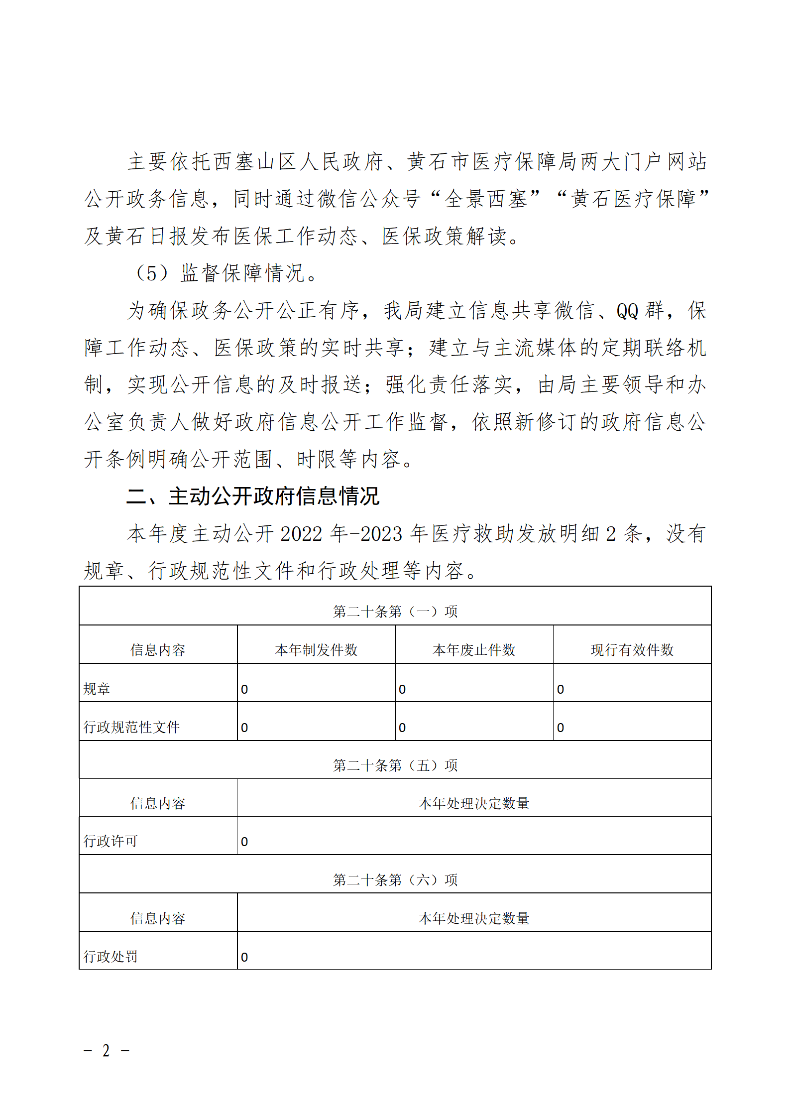 西塞山区医保局2023年政府信息公开工作年度报告