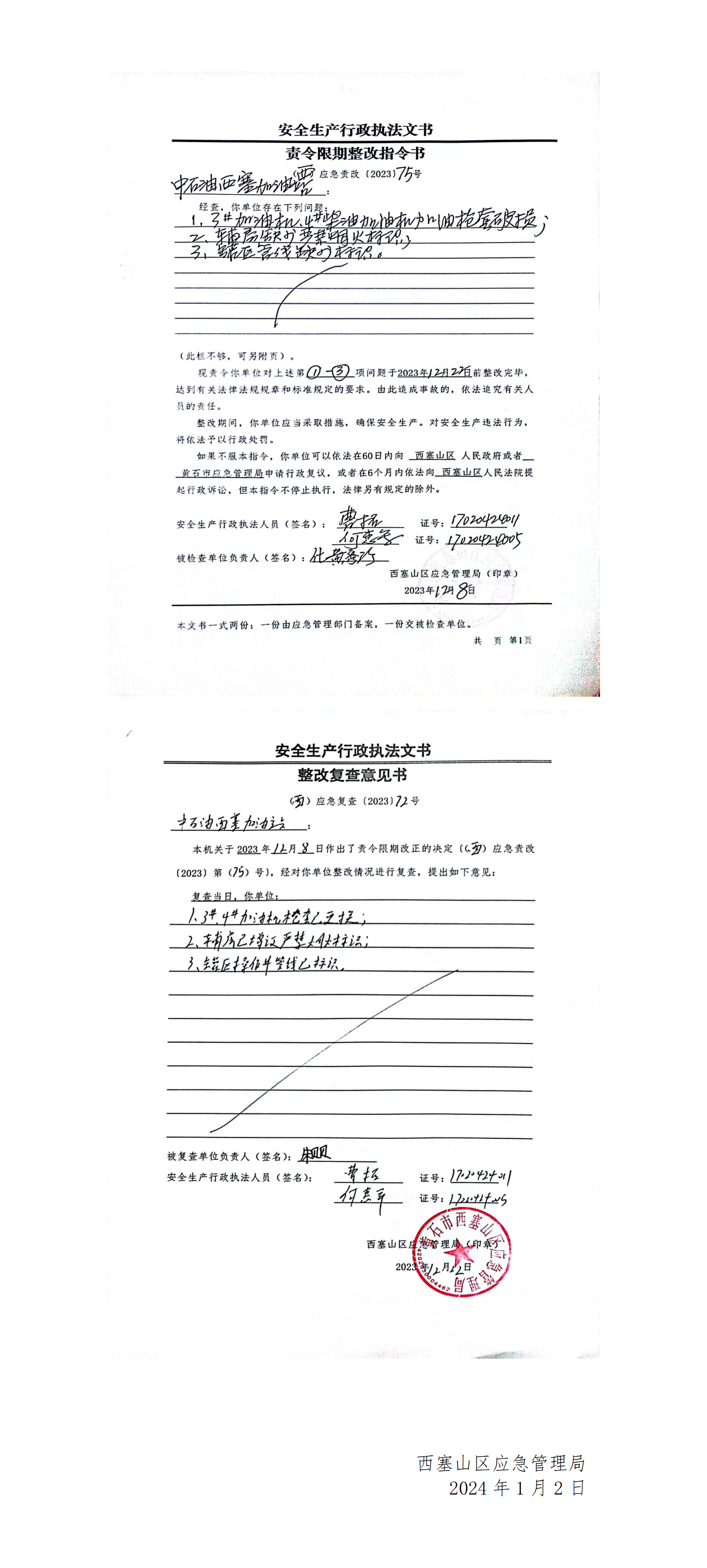 西塞山区应急管理局危化科2023年四季度“双随机、一公开”专项执法检查结果公示