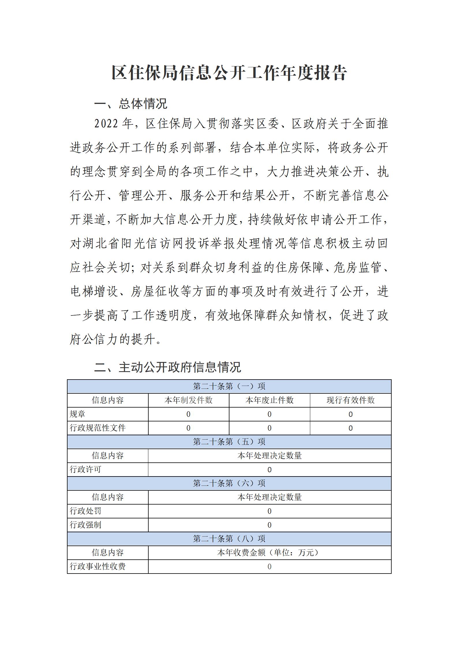 西塞山区住保局2022年政府信息公开工作年度报告