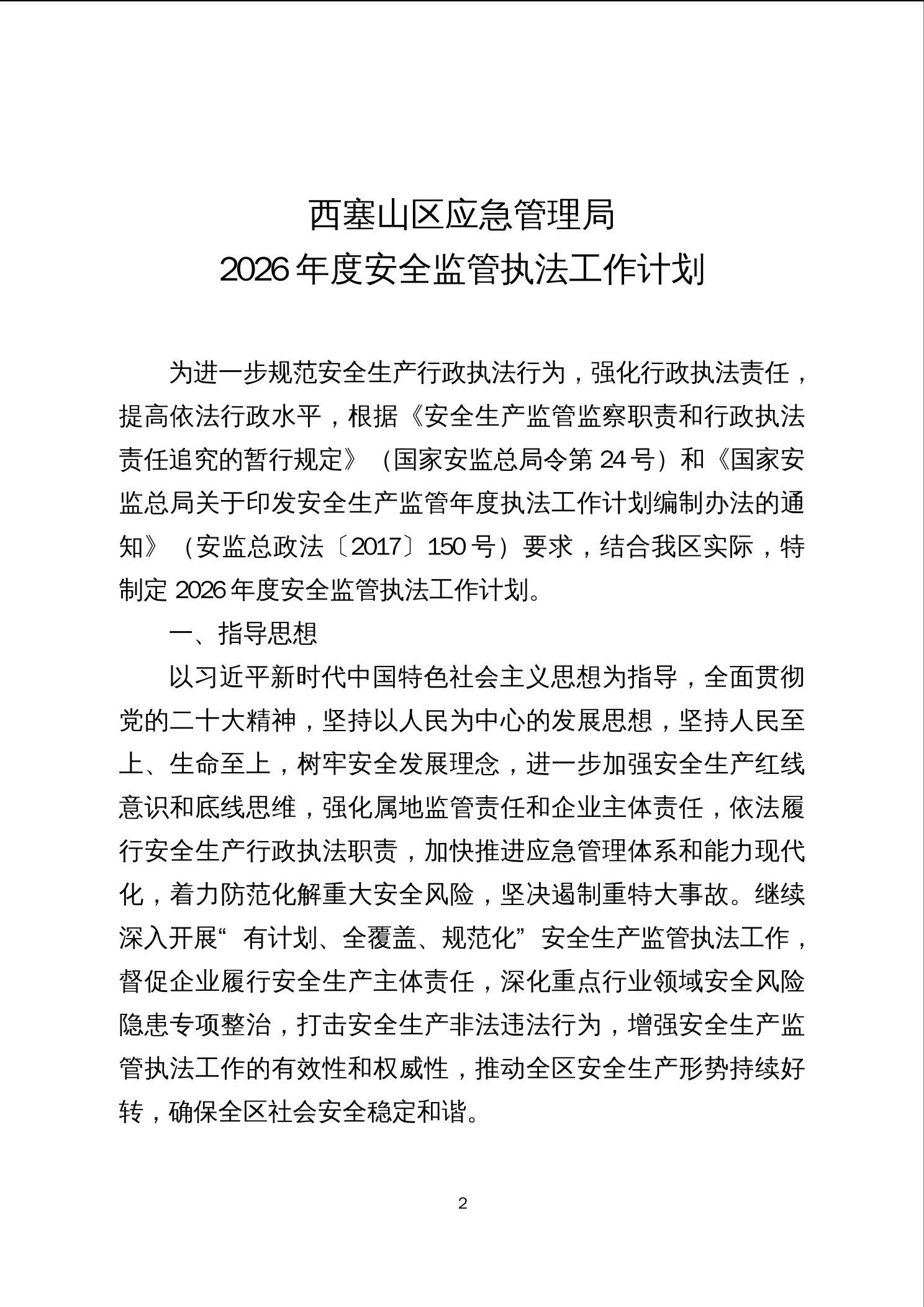 西塞山区应急管理局2026年度安全监管执法工作计划