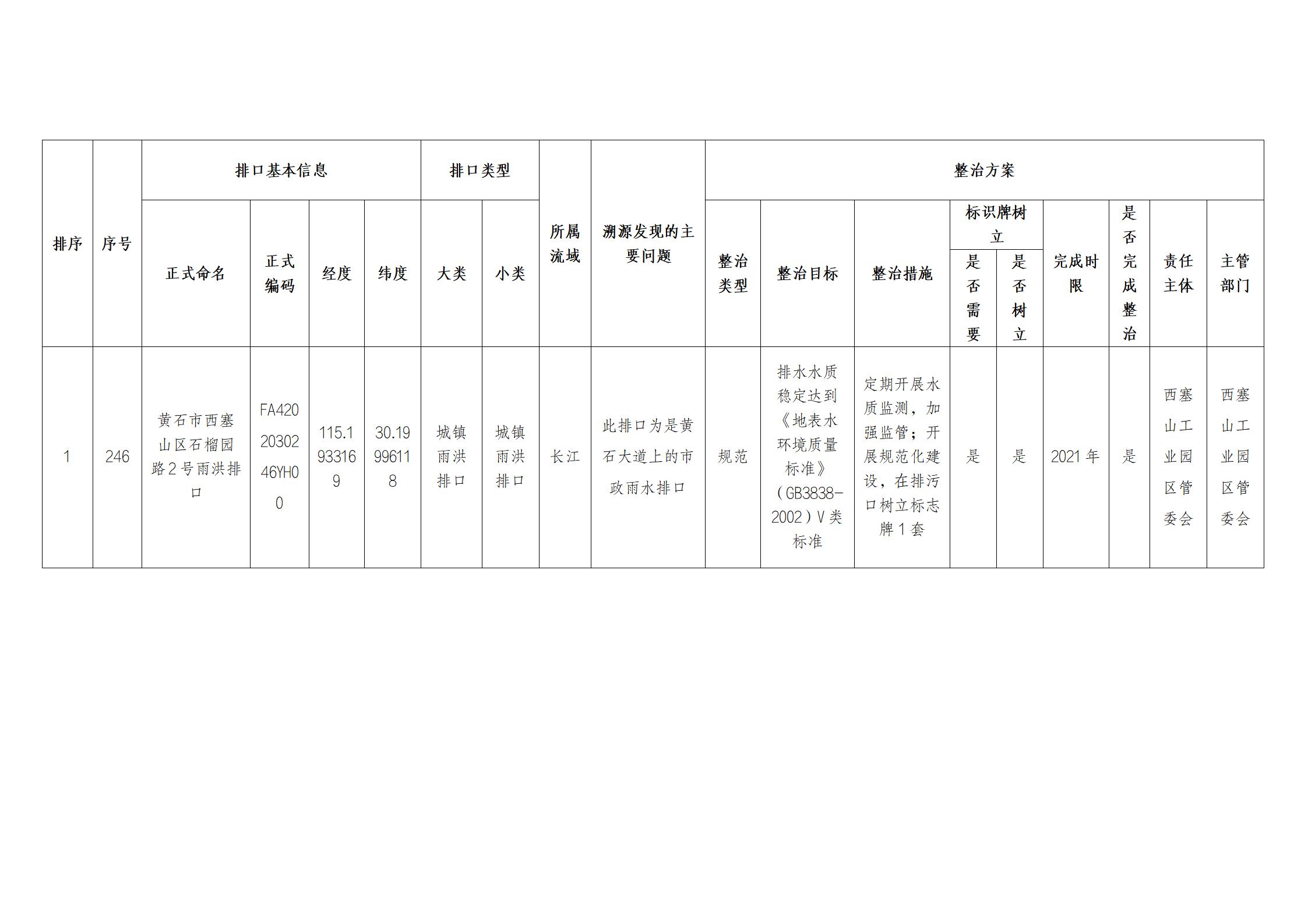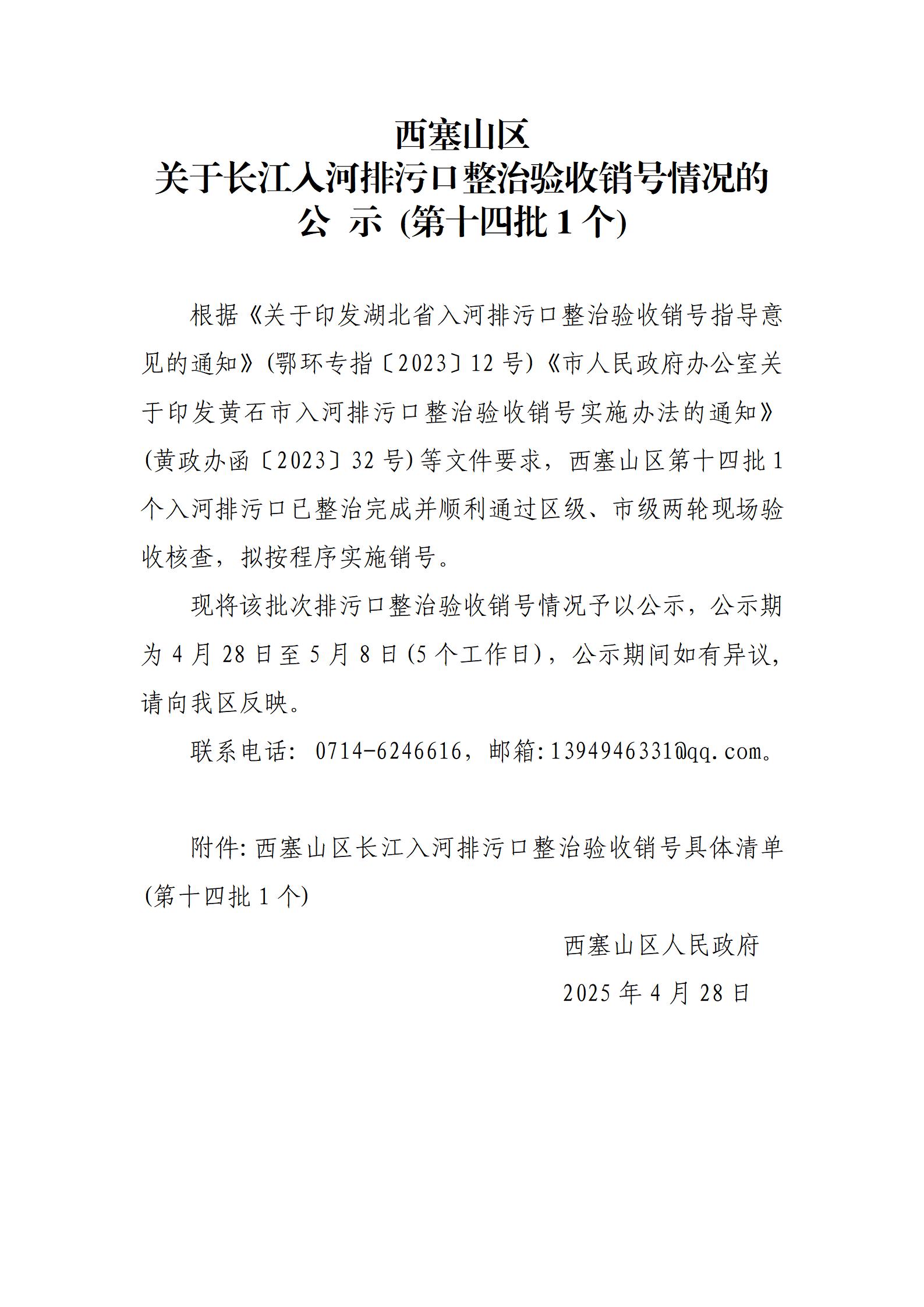 西塞山区关于长江入河排污口整治验收销号情况的公示 (第十四批1个)