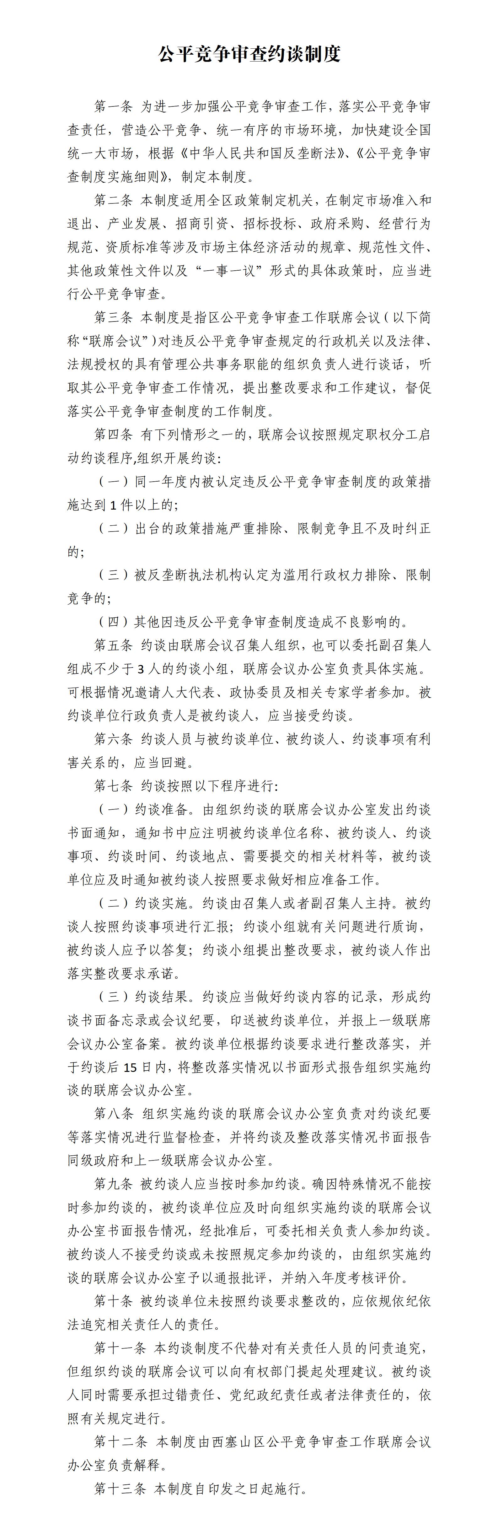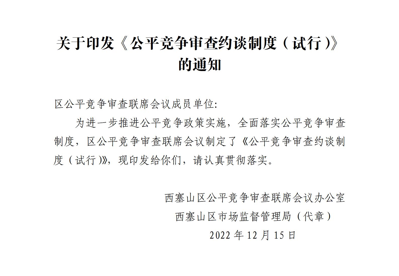 关于印发《公平竞争审查约谈制度(试行)》的通知