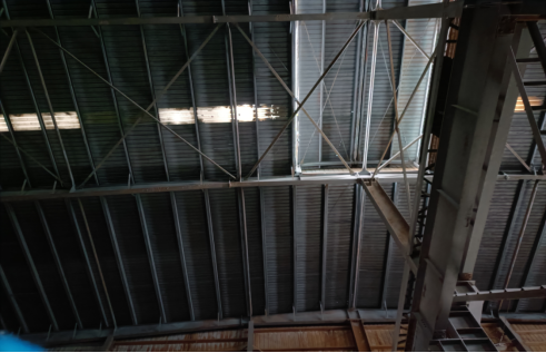 5.作业环境不佳有一定影响。屋面积灰造成难以区分彩钢板与采光瓦界限,对误踩采光瓦坠落有一定影响。
