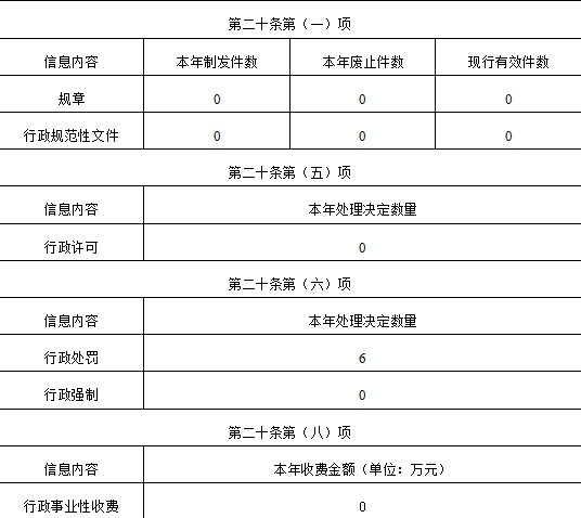 本年度未制定规章和行政规范性文件,无行政许可、行政处罚、行政强制和行政事业性收费等信息。