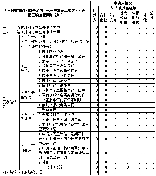 本年度未收到和处理政府信息公开申请。