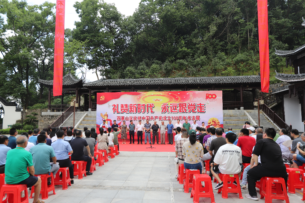 飞云公园焕新彩,飞云书院颂党恩。6月28日上午,西塞山区以“礼赞新时代·永远跟党走”为主题,隆重举办庆祝中国共产党成立100周年书法作品展。