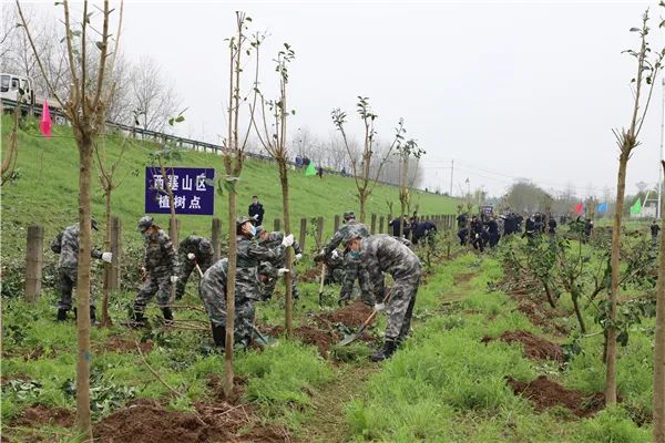 植树现场,市、区领导与参加义务植树活动的干部职工干劲十足,兴致勃勃。大家配合默契,三四人一组,或挥锹铲土,或扶苗培土,或踏土夯实,认真完成每道工序。种好的一株株树苗整齐排列,昂然挺立。参与现场植树的干部职工纷纷表示,植树活动,不仅美化了环境,还进一步提高了大家的绿化观念和生态意识,增强了广大干部职工的社会责任感。