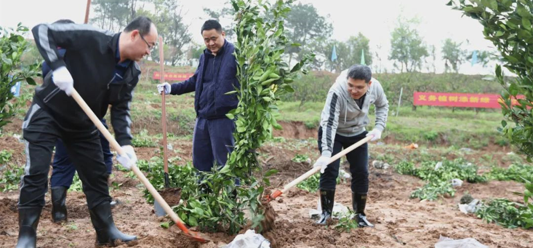 活动现场一片热火朝天,大家或挥锹铲土、扶苗培土,或踏土夯实、整理树盘,认真完成每一道工序,细心栽好每一株树苗,齐心协力、配合默契、干劲十足。经过一番劳动,一株株树苗迎风挺立,在和煦的春风中展现出蓬勃生机。